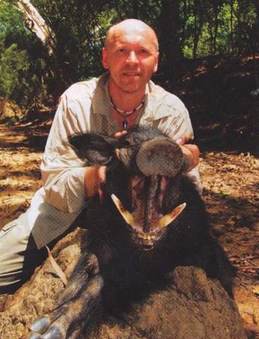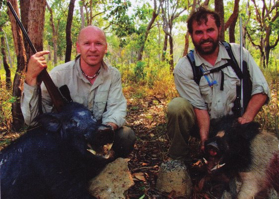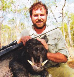 We then headed over a small ridge that exposed us to an open dry area for about one kilometre. Suddenly, a small but crusty old warrior sprung into action only fifteen metres in front of me. Once again, the crack of the .270 shattered both the silence and a boar’s day. The ancient 60kg porker with great long white tusks had been secured at a spot a pig wouldn’t be expected. Another one for the old rule; "expect pigs when you don’t expect them". Boars throughout the week were taken sleeping in sandy hollows within dry creek and river beds, around water holes and lagoons, oil carcasses, dams, and paperbark swamps.